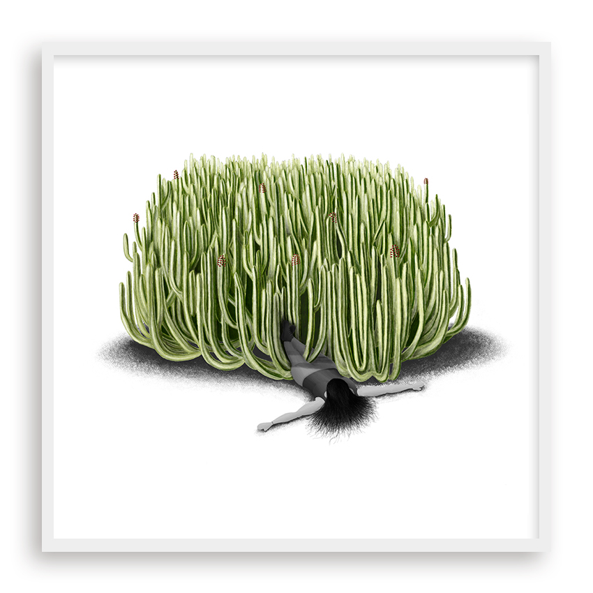 Ilustración que representa a la especie vegetal endémica canaria «Euphorbia canariensis» (Cardón), y a una chica contemplando admirada su natural y portentosa belleza.