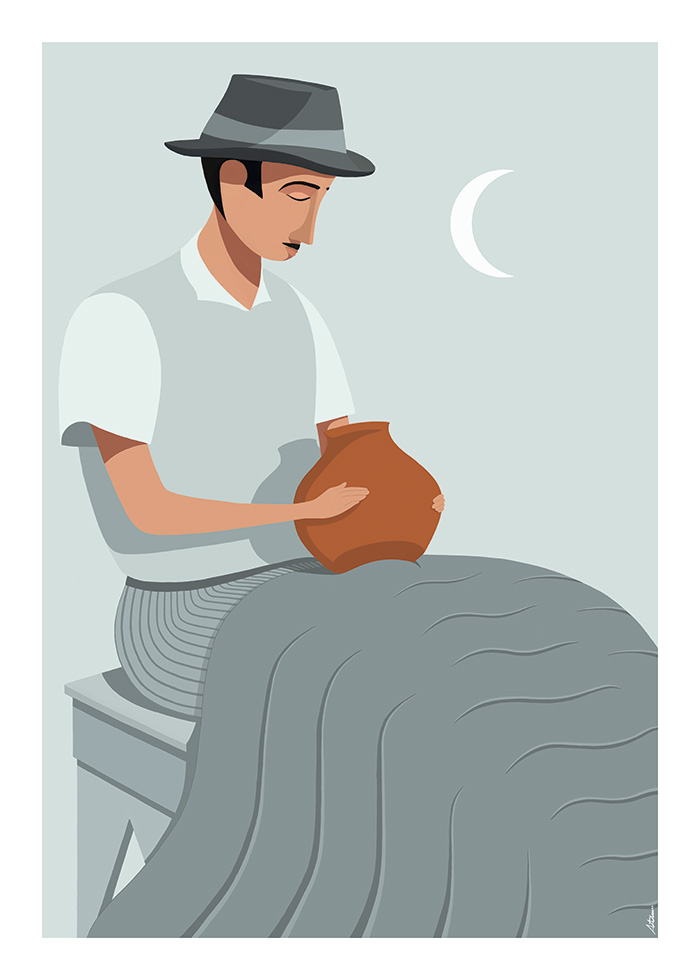 Lámina decorativa en la que se retrata un locero canario en un azul pálido que le aporta mucha delicadeza al diseño.