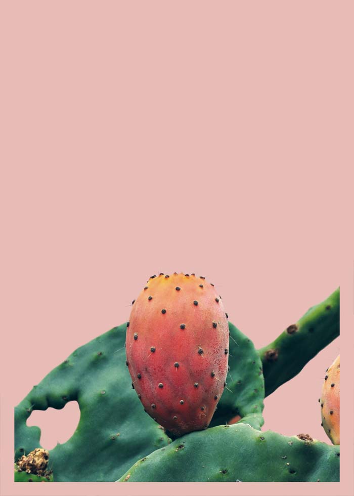 Fotografía de una tunera sobre fondo rosa.