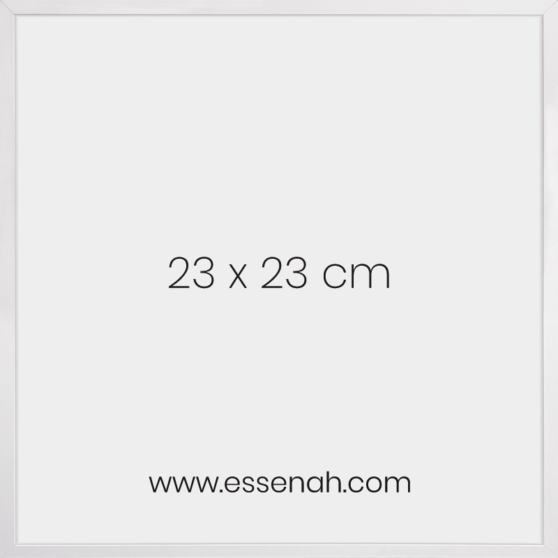 Marco de madera color blanco para láminas de 21×30 cm. Profundidad de 3,2 cm. y anchura de 1,9 cm. El marco dispone de un protector de metacrilato en la parte delantera, así como de dos colgadores en la parte trasera.