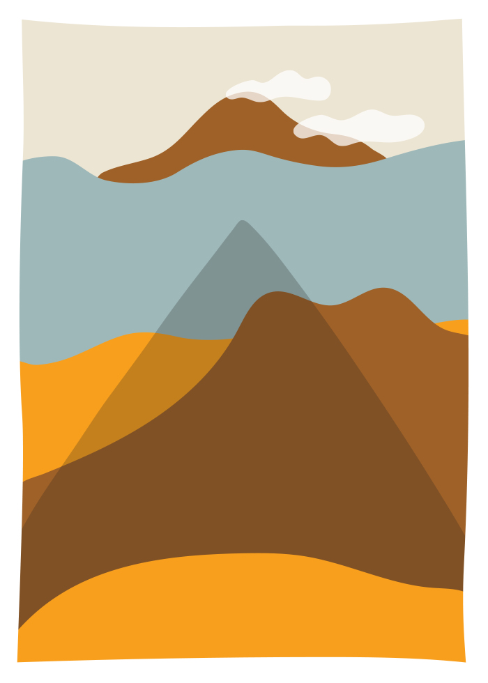 Ingeniosa lámina en la que de un modo abstracto se ilustra la sorprendente y madrugadora sombra del Teide. Este cuadro, sea por su originalidad, sea por su atractivo diseño, no deja de sorprendernos a la hora de vestir cualquier pared.